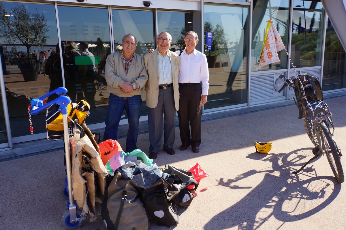 Arrivé à Lyon St Exupéry, je suis accueilli par des fidèles amis arméniens. Et comme "par hasard", ce sont les derniers que j'ai vus en partant de France, qui sont les premiers que je rencontre à mon arrivée ! Ari et Paul vont m'aider à préparer le vélo et m'escorter jusqu'au lieu de la conférence. 16h00 : Afin d'aller plus vite, je me libère des sacs et les mets dans le véhicule qui me guide, puis je me remets à pédaler. On dirait que le vélo a un moteur, libéré du poids de 30 kgs de bagages !!