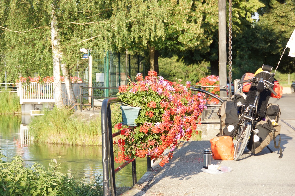 Encore une longue journée qui s'annonce. Réveillé tôt, je prends mon petit déjeuner à 5h30, et je profite du magnifique lever de soleil dans la campagne. Vers 8h je suis prêt à démarrer. Direction Montbéliard. Cela prends du temps de ranger et démonter sa maison tous les matins, et réinstaller toute sa vie pour 2 mois sur un vélo. Vous avez déjà essayé ?