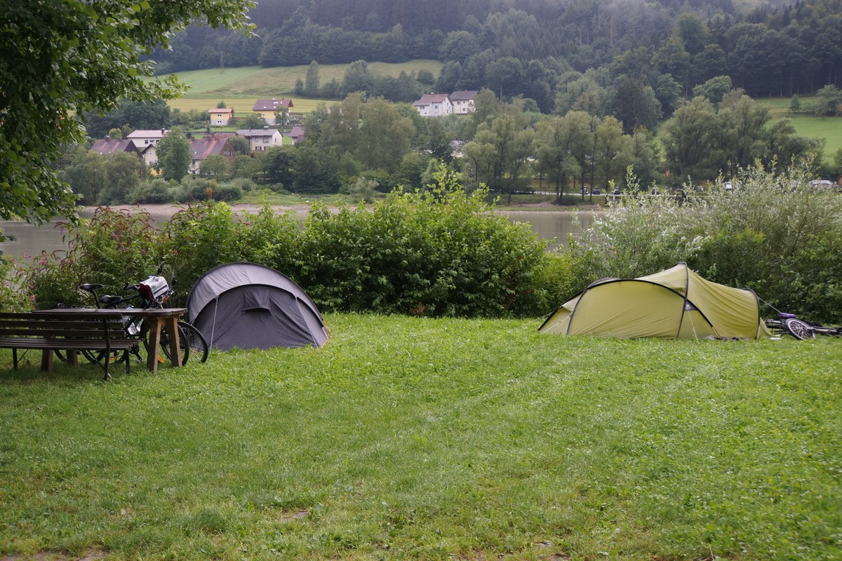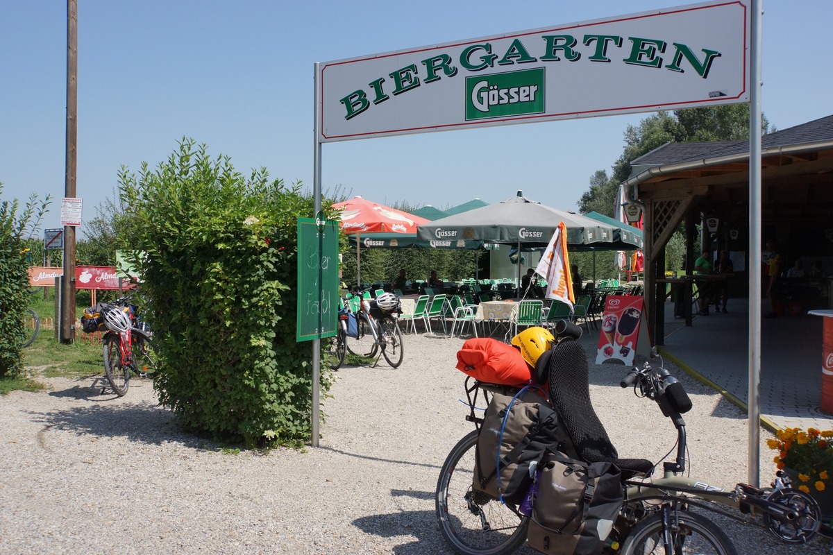 A la sortie de Vienne sur l'Eurovélo, je croise quelqu'un complètement nu… Je me demande ce qu'il fait là sur le chemin. Atteinte à la pudeur ? Il fait trop chaud pour les autrichiens ? Ou alors une coutume locale ? Non, car en détournant la tête je m'aperçois qu'il n'est pas le seul… ils sont des centaines là au bord du Danube, en contrebas de la voie cyclable, même pas cachés. C'est quand même un peu provocateur et indécent. C'est simplement la plage nudiste de la région, et sur des centaines de mètres.