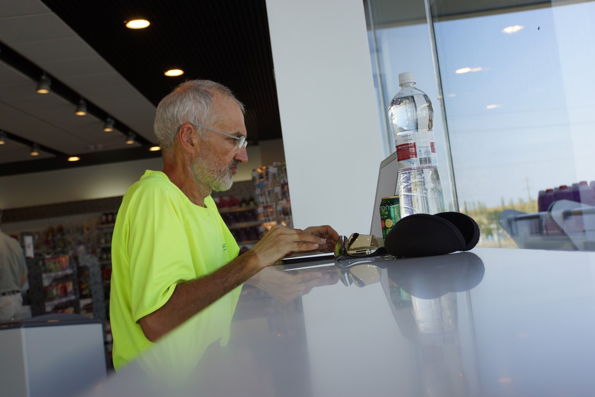 Arrêt dans une station pour le plein (réchaud et wifi)