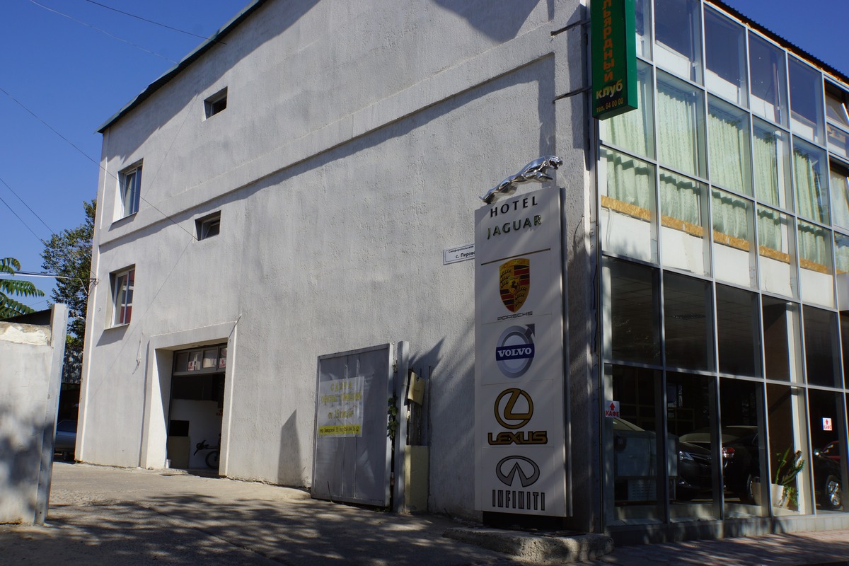 Entrée de l'hôtel. C'est un garage de voiture au rez-de-chaussée.