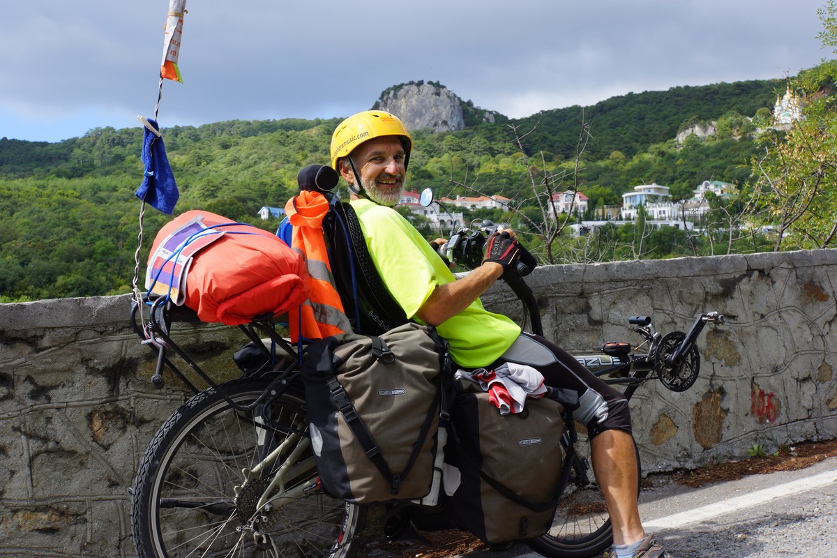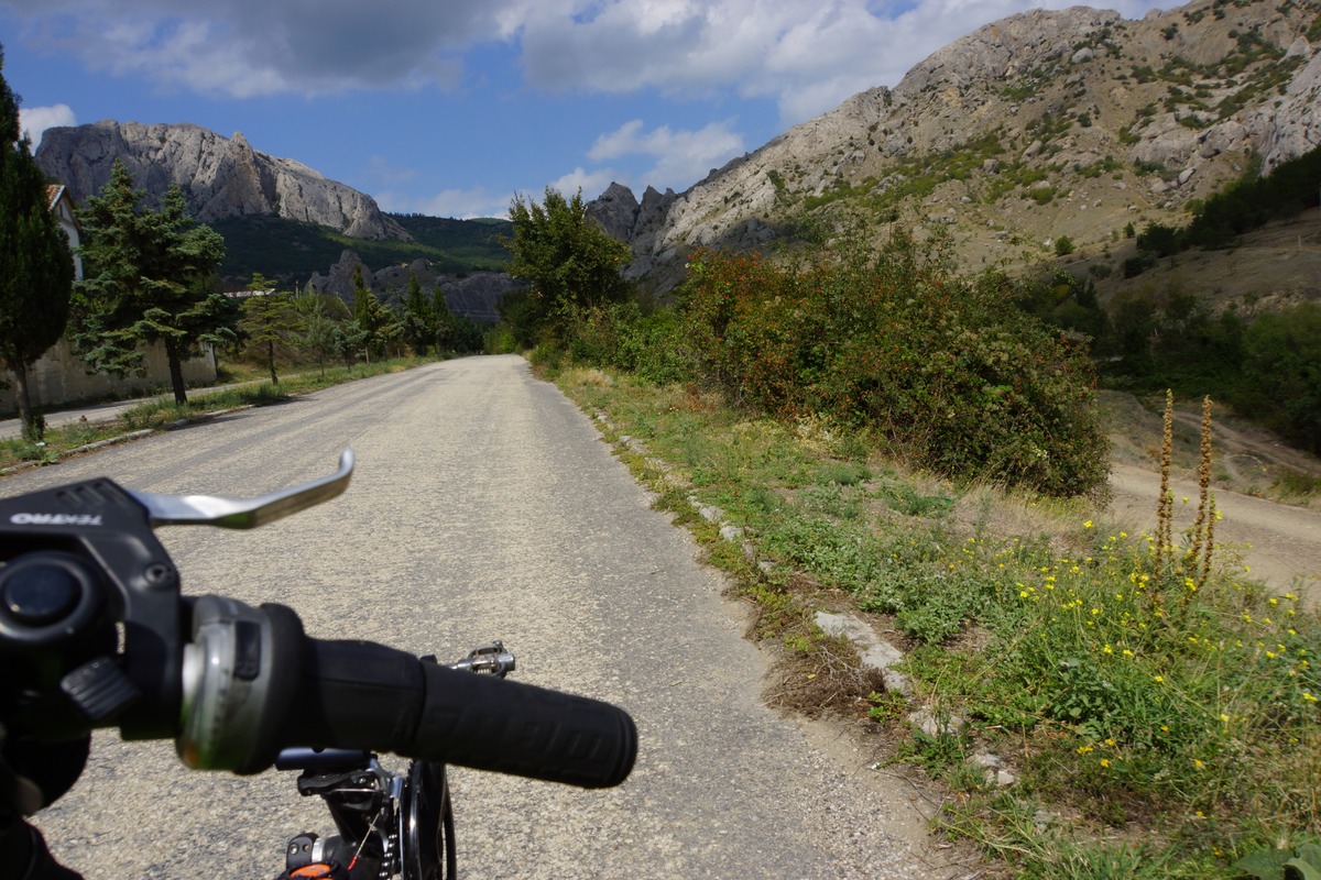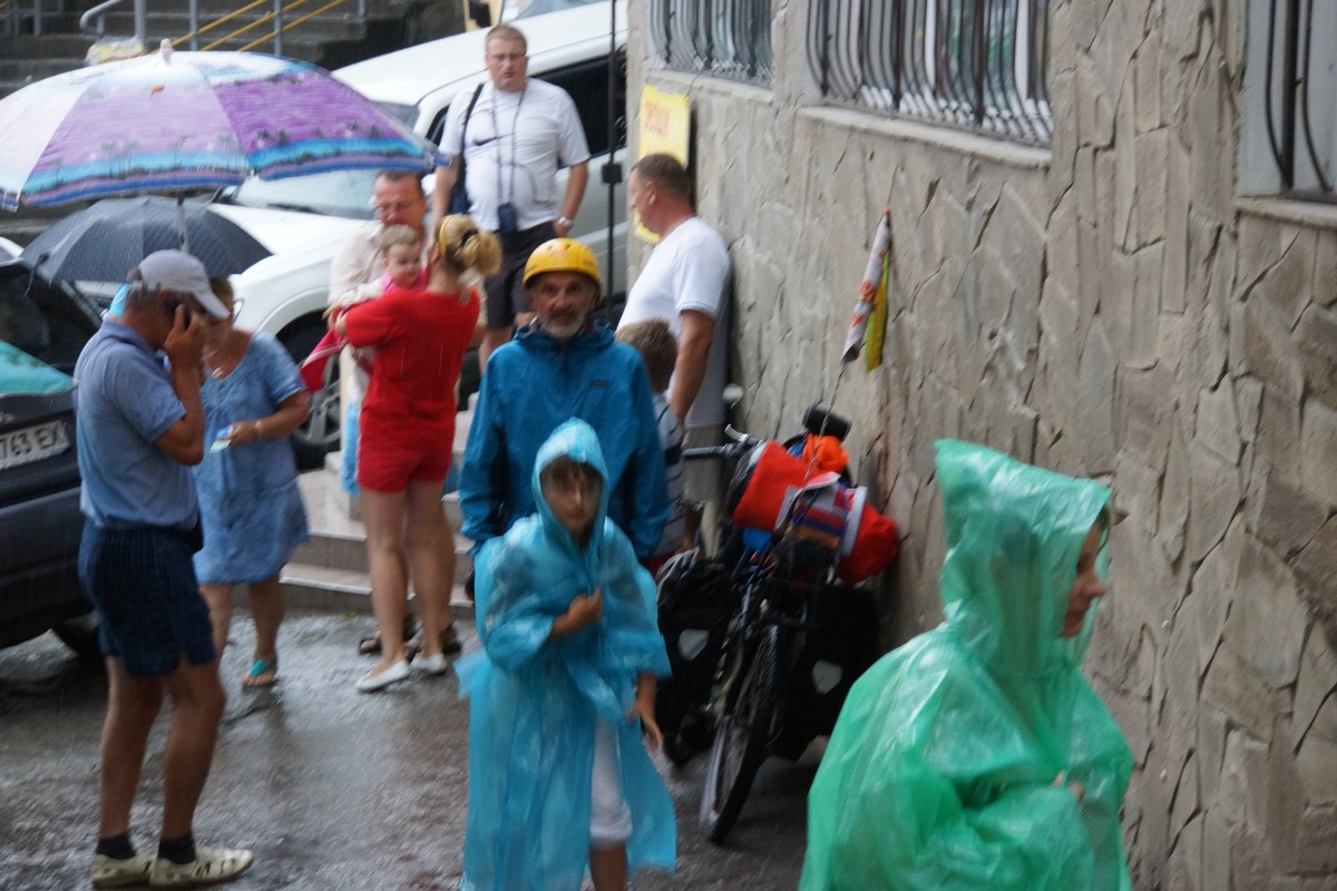 J'attaque donc une première journée dans les montagnes, dans cette région qui est la côte d'Azur de l'Ukraine. D'ailleurs il y a beaucoup d'étrangers (Russes, Bielorusses, etc.). Ce n'est pas très haut, mais ça ne fait que monter et descendre. Dans la matinée mon moral est en baisse. Pourquoi j'ai choisi de faire ce détour, quand je vois tout ce qui est devant moi à grimper ? Alors que j'aurais pu tranquillement partir sur le circuit prévu, sans difficultés. C'est mon choix, donc il faut que j'assume. Ce n'est pas que c'est difficile, ou très éprouvant, mais c'est long des montées à 5-6 km/h avec un vélo de 50 kgs. Quelques gouttes de pluie commencent à tomber, et les orages se défoulent dans les montagnes toutes proches.