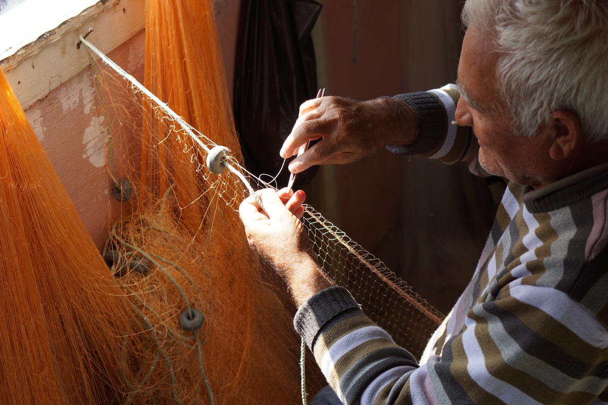 Avant de repartir, j'observe Balta préparer ses filets pour la pêche. Quand il a besoin de poisson, il prend son bateau en face de chez lui et va chercher à manger...