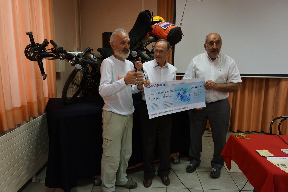 17h00 : tout le monde est là pour célébrer mon arrivée à la Maison de la Culture Arménienne de Villeurbanne. Je suis touché par la présence de tous ces amis connus et inconnus. Après les discours, c'est le direct sur TLM, les interviews, et le partage d'expériences avec les uns et les autres. Et aussi la remise officielle du chèque de 10 000 euros au trésorier de l'association Espoir pour l'Arménie. Un grand moment, quand on pense à tout ce que cela signifie pour ces enfants de Chirakamout. Enfin un chauffage digne de ce nom pour les hivers à -15°. Ce ne sera pas du luxe, pour ces enfants de moins de 6 ans.