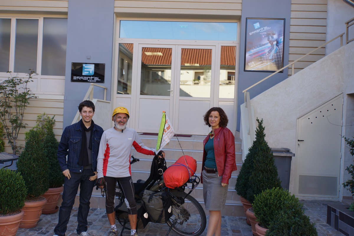 Ce sera un parcours non-stop à fond de 12h à 16h45, jusqu'à l'entrée de Valence. Un peu avant, je suis rejoint par Roger à Tain (il m'avait aussi accompagné au départ) que j'ai failli rater car j'ai abandonné l'itinéraire officiel de la ViaRhona pendant 1 ou 2 kms… Mais avant de me rendre place St Jean, je fais un détour par le square Charles Aznavour, lieu du départ le 21 juillet. Pour vraiment boucler la boucle et pour l'histoire. Et c'est sous les applaudissements des amis, de la famille, des officiels qui sont là que je suis accueilli chaleureusement. Un énorme merci à tous ceux qui étaient présents. Une sensation étrange m'envahit. Me voilà de retour, et je n'ai pas l'impression d'être parti aussi longtemps. J'ai pédalé quelques semaines en traversant quelques pays, c'est tout. Je n'ai pas l'impression d'avoir réalisé un si grand exploit que ça, contrairement à ce que l'on me dit.