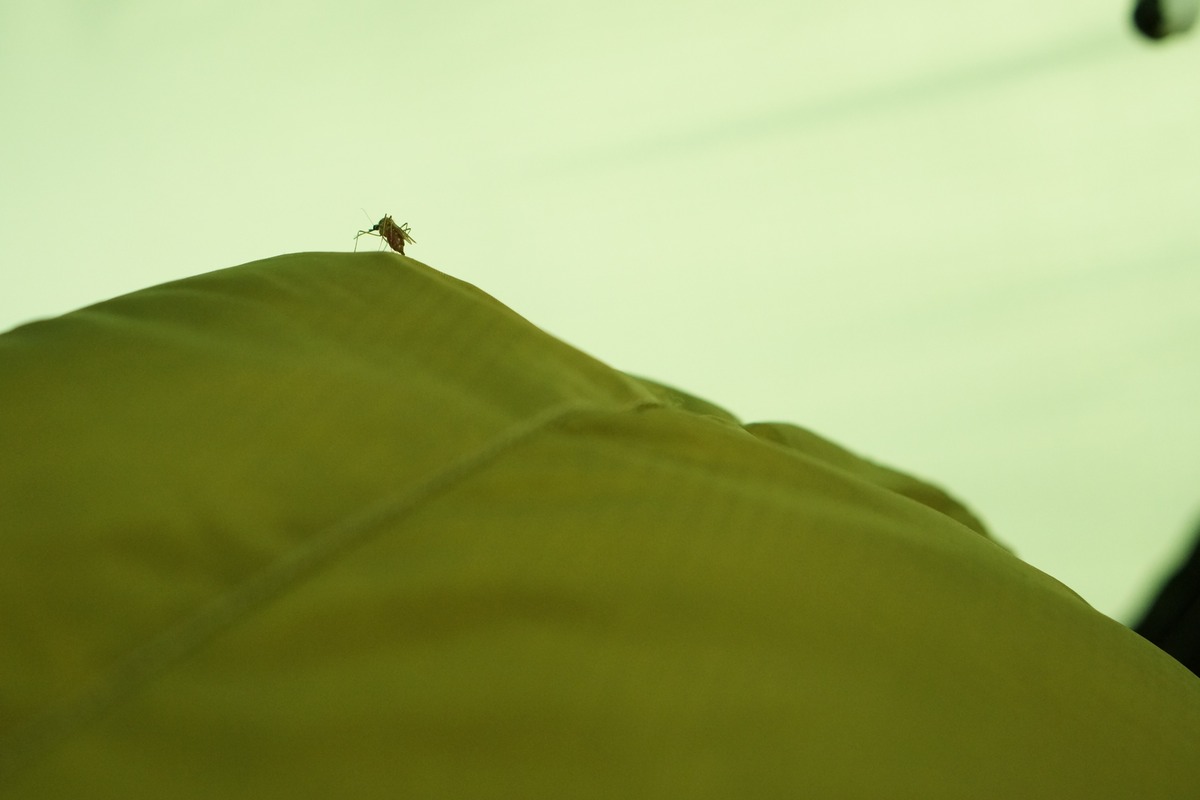 Ari m'emmène ensuite pour une petite visite des "grattes-ciel" de Villeurbanne. Une construction étonnante datant des années 30, ressemblant, en miniature, aux grattes-ciel de New-York. Puis petit arrêt à la Part Dieu pour récupérer quelques devises pour différents pays traversés. Départ du centre de Lyon vers les 15h. Heureusement c'est dimanche, et la circulation est tranquille pour sortir de la ville. Direction Bourg-en-Bresse pour traverser le pays des poulets. Je croyais que le mistral était réservé à la vallée du Rhône, mais c'est faux… Il n'a peut-être pas le même nom ici, mais le vent est encore là, et la moyenne s'en ressent. En fin d'après-midi je recherche un endroit tranquille pour dormir. Ce sera au bord d'un des nombreux étangs de la région. Bien sûr il y a déjà du monde présent : les oiseaux, de nombreuses espèces, mais aussi les moustiques. Voyez la taille de la colonie du secteur…. Celui-là a réussi à entrer dans la tente…