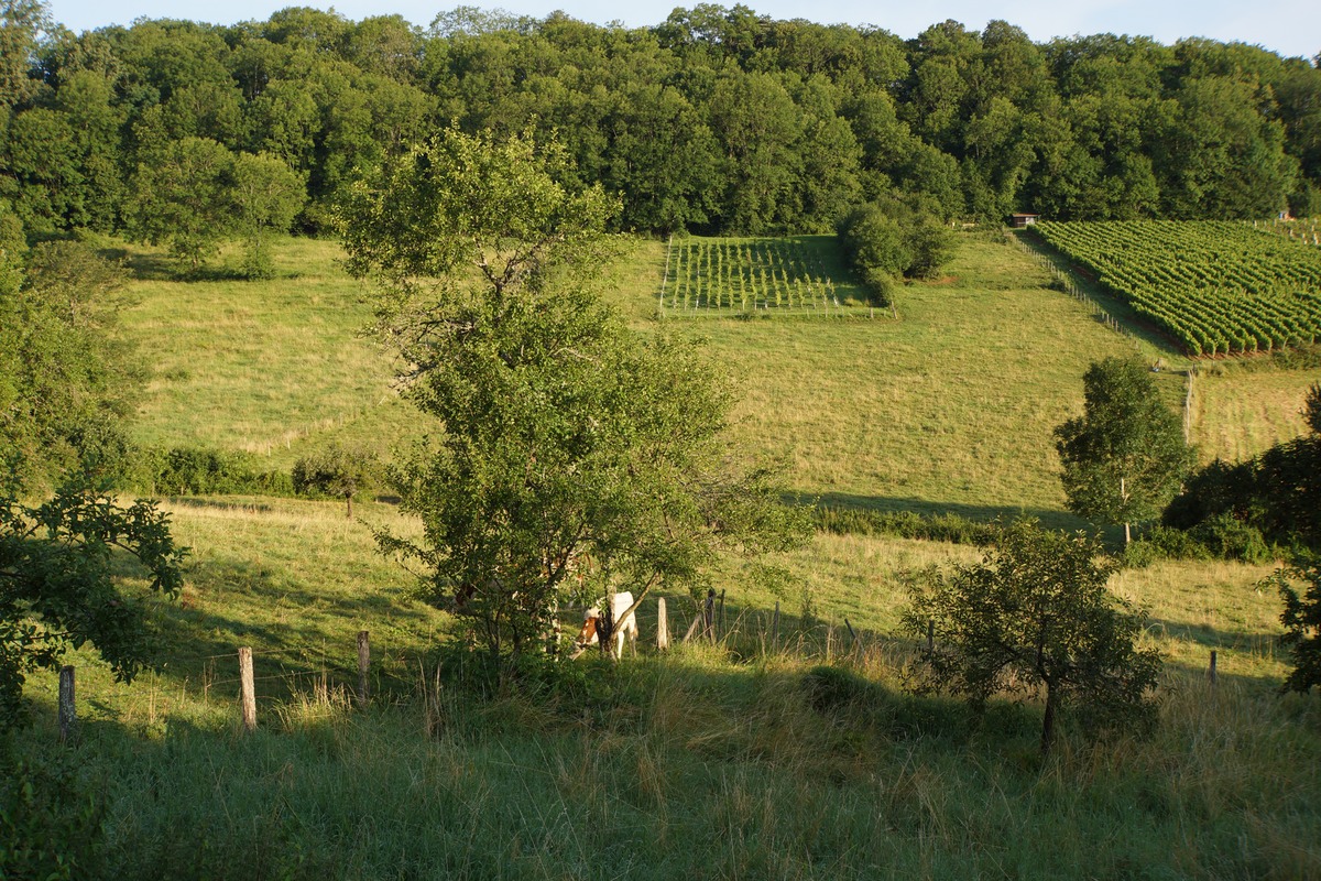 Il m'invite gentiment à utiliser sa douche, et ensuite à partager leur repas. Avec dégustation unique du vin bio (rouge et blanc) de leur vigne que l'on voit en face. Heureusement je n'avais plus que 20 m pour rejoindre ma tente…