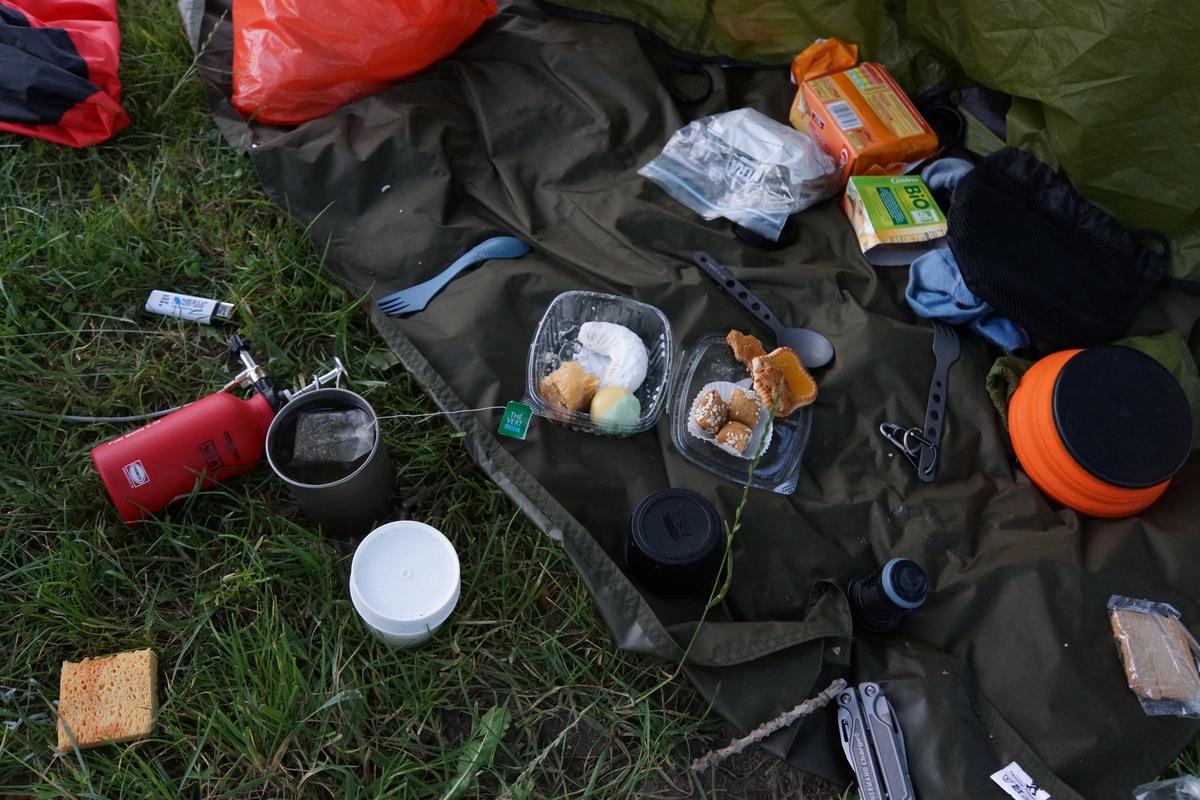En général il ne m'aiment pas trop, donc cela ne devrait pas poser de problème. Je mets en place mon campement et mon réchaud, et là surprise. Le jet d'essence est anormal, et je me fais doucher la tête… Je recommence, pareil. J'essaie de l'allumer quand même, et une énorme flamme jaillit tout droit…. Je réessaye, et là j'ai failli mettre le feu à la forêt… L'essence qui s'était échappée était tombée sur les feuilles mortes et tout s'embrase. Mais c'est vite éteint, rassurez-vous.