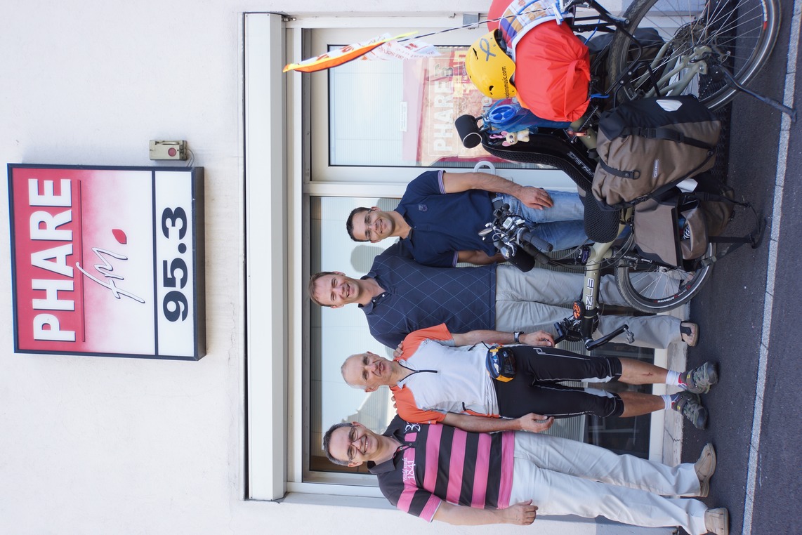 Vite, départ pour le prochain rendez-vous : visite chez Phare FM, partenaire radio de Sephora. Ils sont tous surpris de me voir arriver avec mon engin. Merci les amis pour vos encouragements !