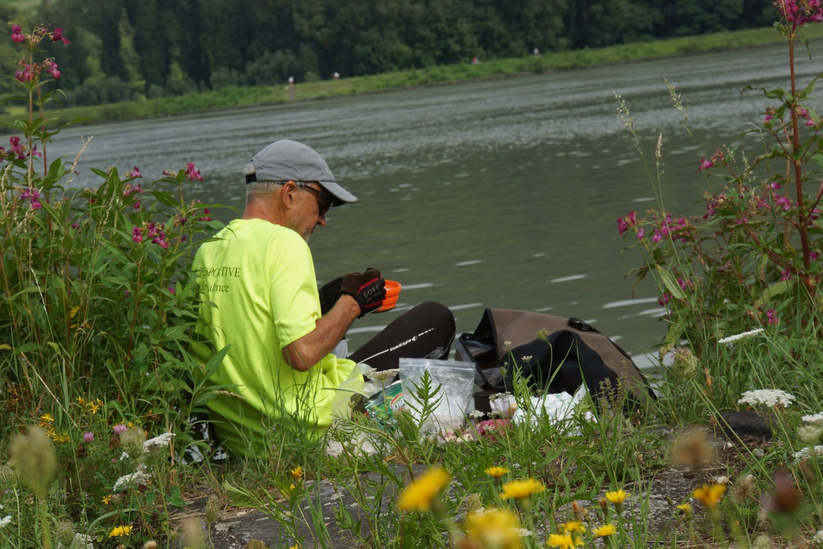 Après une nuit un peu agitée, le rangement se fait dans l'humidité. Mais je m'aperçois que j'ai oublié de poster les cartes postales d'Allemagne… Je me prépare à retourner au village proche pour les déposer, quand à cet instant des employés municipaux passent pour nettoyage du lieu. Je profite de leur demander s'ils peuvent me prendre les cartes. Pas de problème.