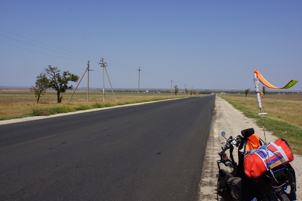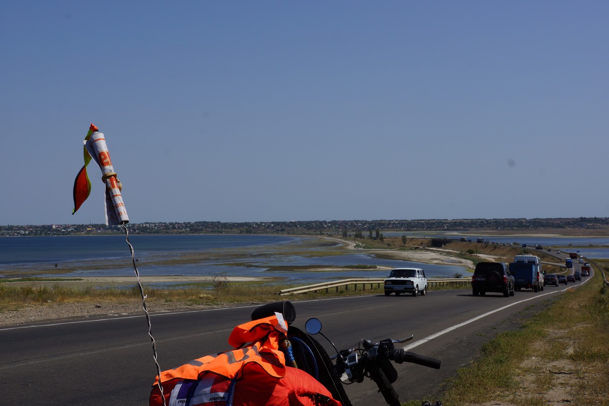 Arrivée à Kerch, le point extrême de l'Ukraine, après une longue journée éprouvante, avec beaucoup de vent (pas dans le bon sens…) . Une ville qui s'étale sur 40 kms le long de la côte