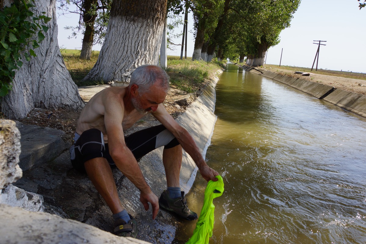 On discute un moment, et il y a aussi là une anglais en voyage à vélo. Elle va aussi en Crimée. Mais pour elle c'est hôtel tous les soirs. C'est le deuxième cyclotouriste que je rencontre depuis la Roumanie.