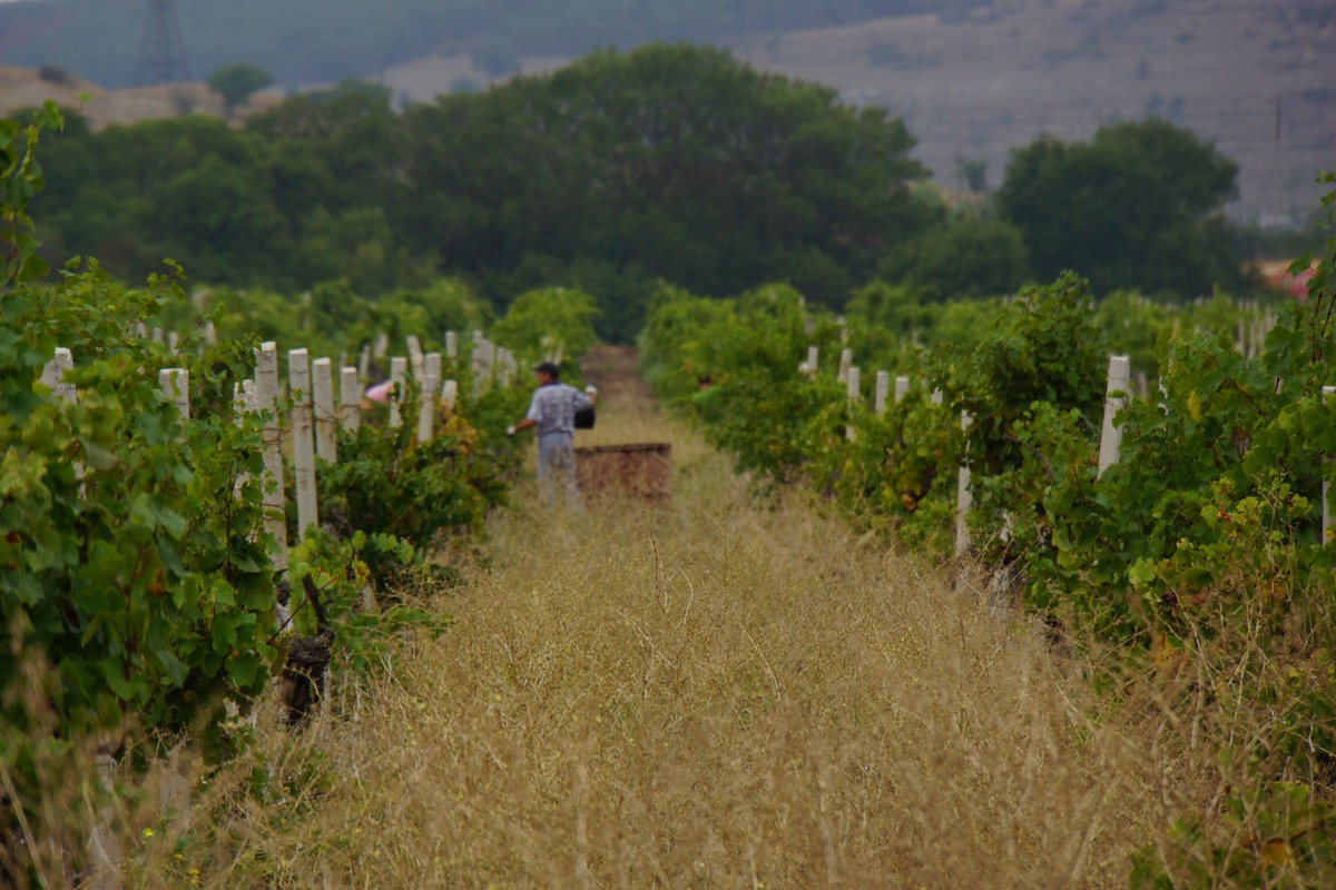 J'avais choisi mon lieu de bivouac dans une vigne. Vers 7h j'entends un tracteur, et je vois les vendangeurs arriver au loin. Je me dis qu'il ne faut pas trainer dans les parages trop longtemps. Le temps est couvert.