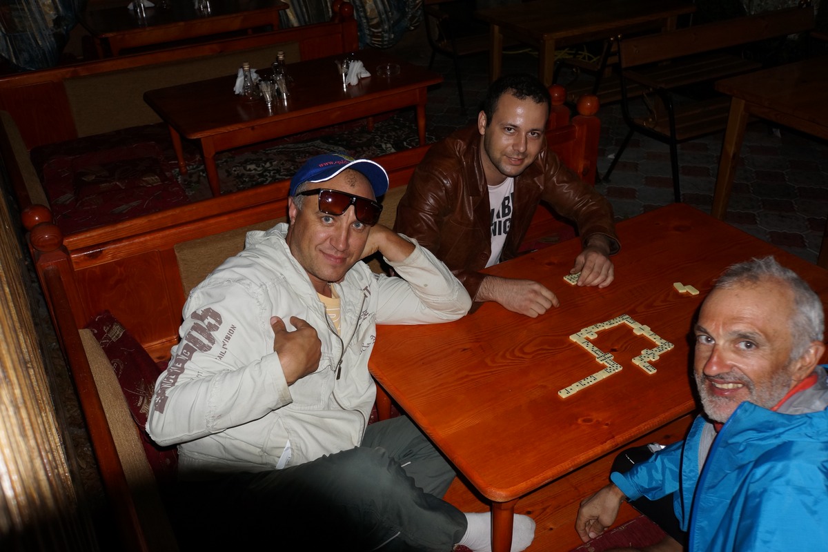 Ensuite le serveur, avec son ami taximan, me propose de jouer aux dominos. On passera le temps ainsi jusqu'à 23h. Tant pis pour le blog. Vous comprenez pourquoi il n'est pas à jour ? Et le soir, si je suis dans ma tente, je n'ai plus souvent le courage de me mettre à écrire. Le matin le réveil est plus lent. La fatigue se fait sentir.