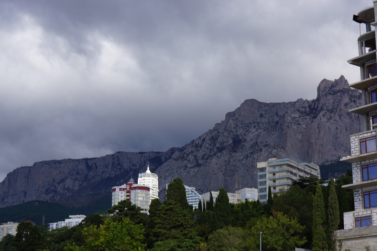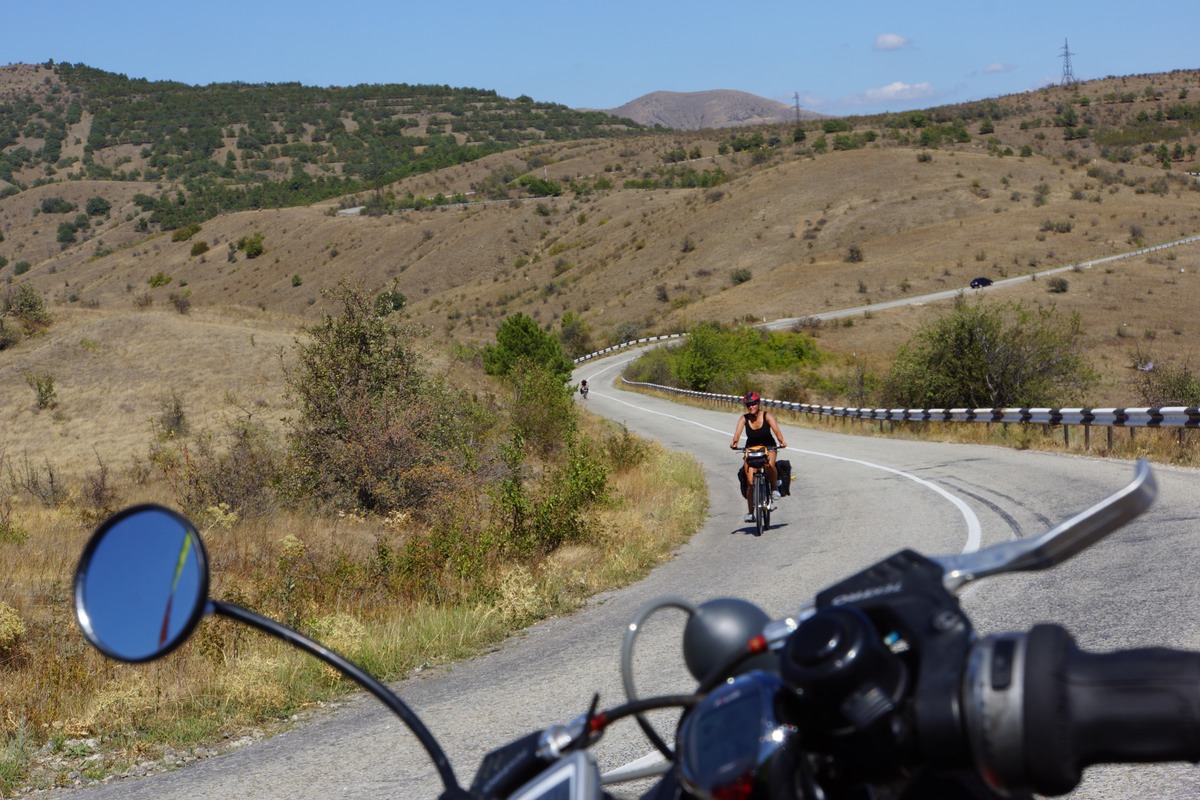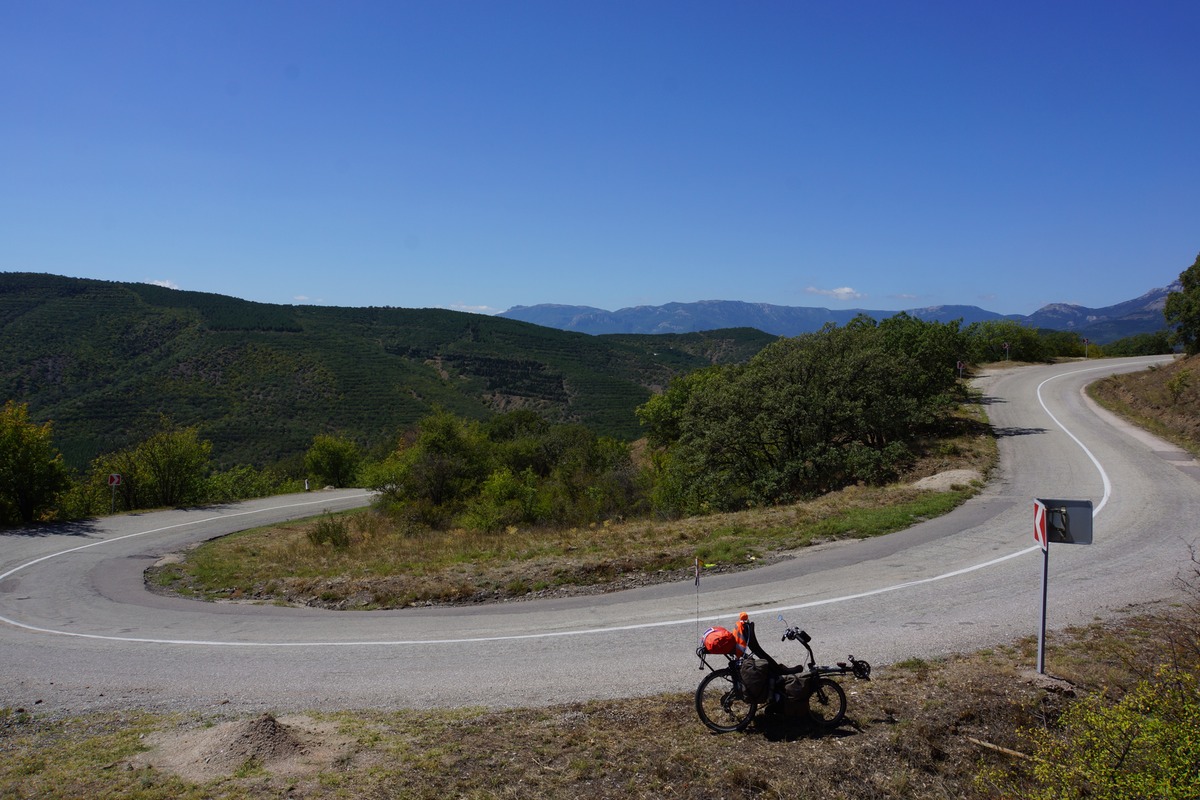 J'attaque donc une première journée dans les montagnes, dans cette région qui est la côte d'Azur de l'Ukraine. D'ailleurs il y a beaucoup d'étrangers (Russes, Bielorusses, etc.). Ce n'est pas très haut, mais ça ne fait que monter et descendre. Dans la matinée mon moral est en baisse. Pourquoi j'ai choisi de faire ce détour, quand je vois tout ce qui est devant moi à grimper ? Alors que j'aurais pu tranquillement partir sur le circuit prévu, sans difficultés. C'est mon choix, donc il faut que j'assume. Ce n'est pas que c'est difficile, ou très éprouvant, mais c'est long des montées à 5-6 km/h avec un vélo de 50 kgs. Quelques gouttes de pluie commencent à tomber, et les orages se défoulent dans les montagnes toutes proches.