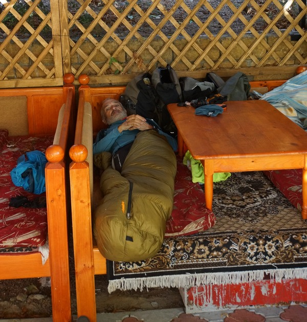 Donc je m'installe sur une banquette, et là je comprends que le serveur et le chauffeur dorment également sur les banquettes. Je pense que pour eux c'est habituel, probablement pour la saison.