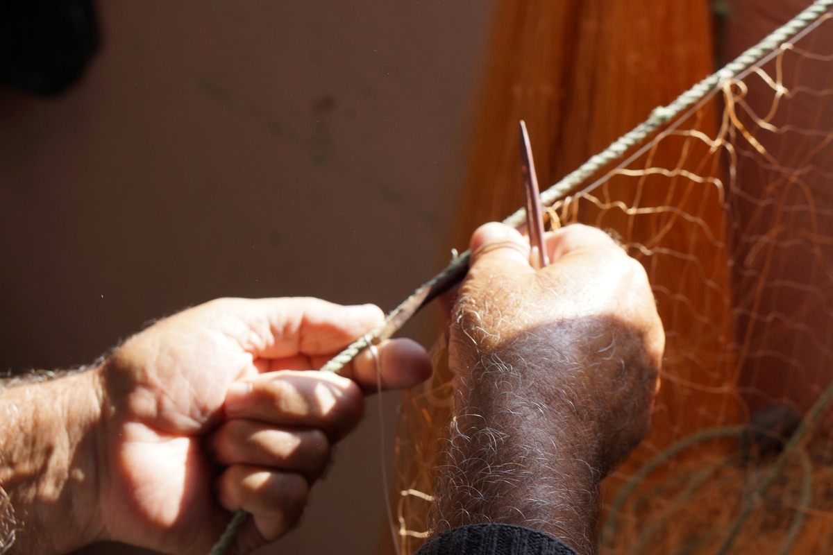 Avant de repartir, j'observe Balta préparer ses filets pour la pêche. Quand il a besoin de poisson, il prend son bateau en face de chez lui et va chercher à manger...