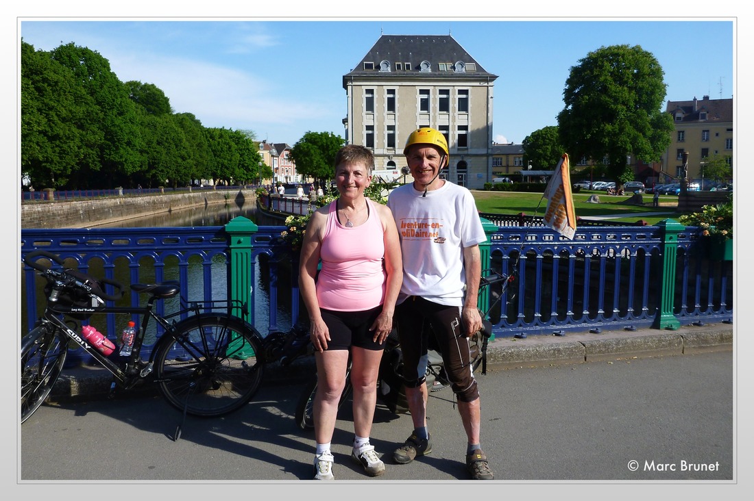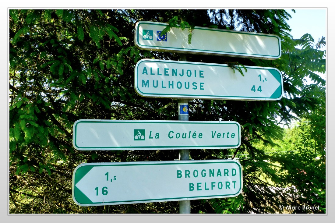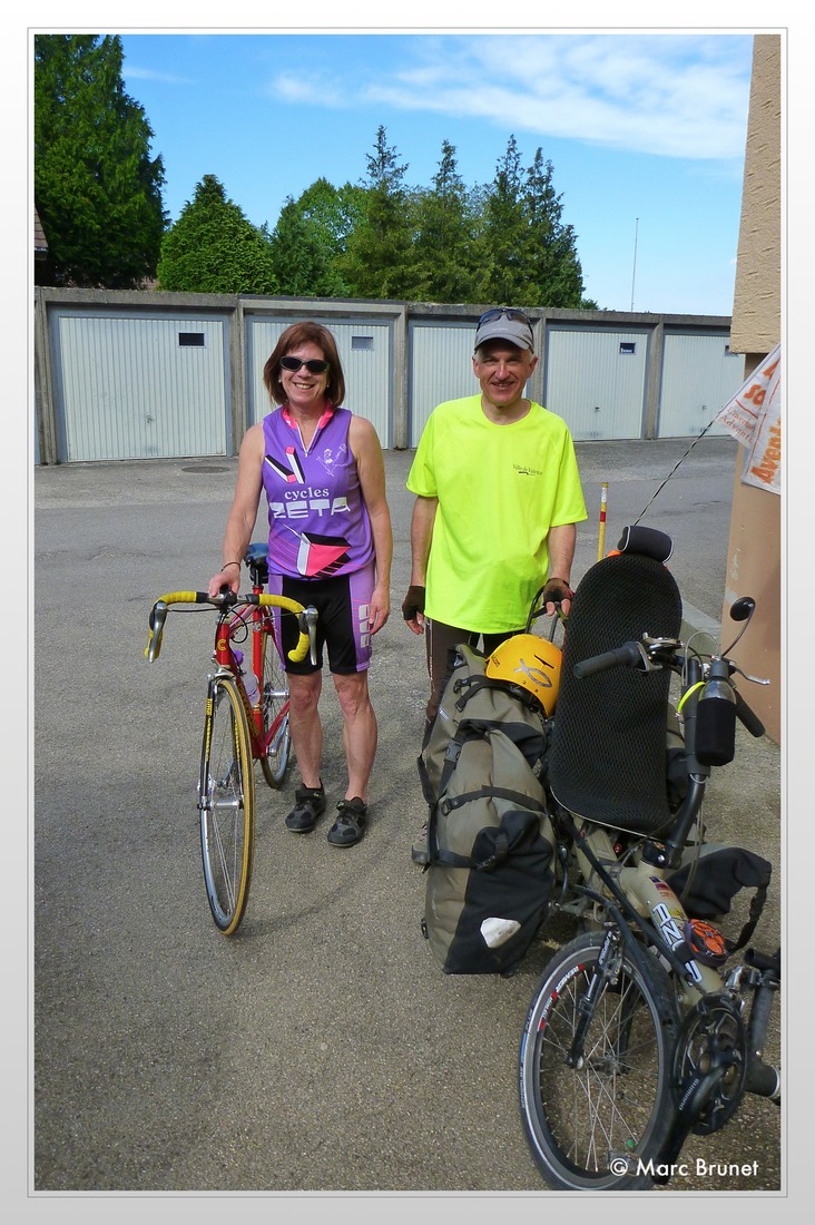 Une quinzaine de kilomètres avant Belfort je suis rejoint par mon hôte du soir, Danielle. Une cycliste expérimentée qui a fait la vallée de la Loire toute seule tout récemment, et à la période où la pluie s'en donnait à coeur joie. Parce qu'il y a eu autre chose que de la pluie ces temps derniers ?