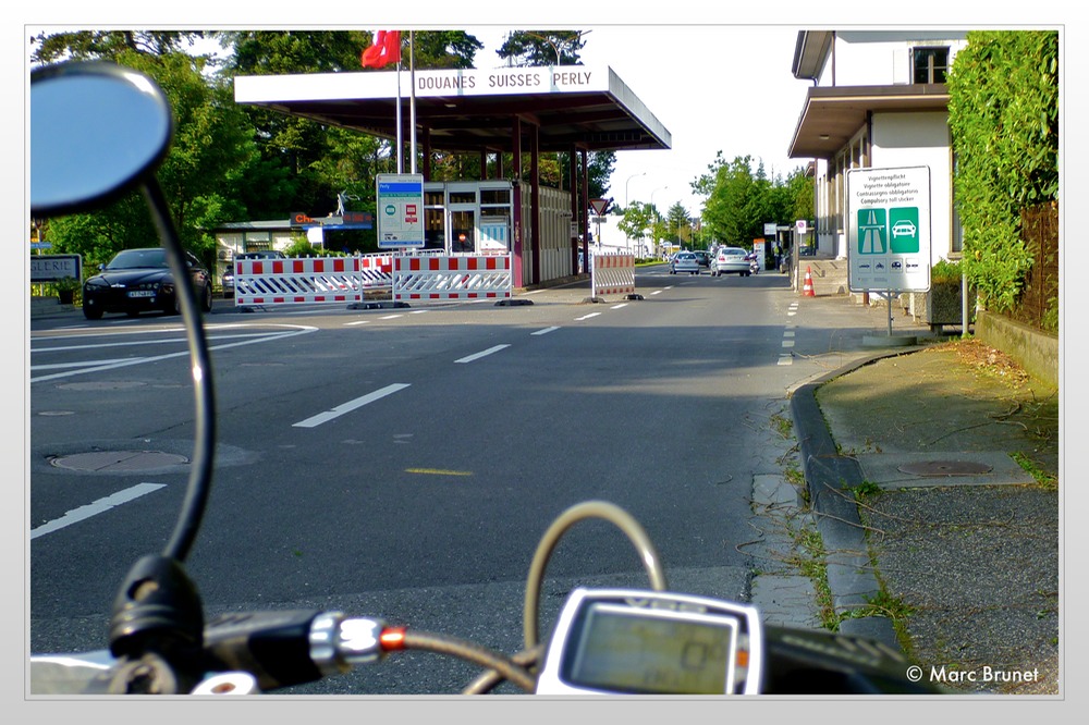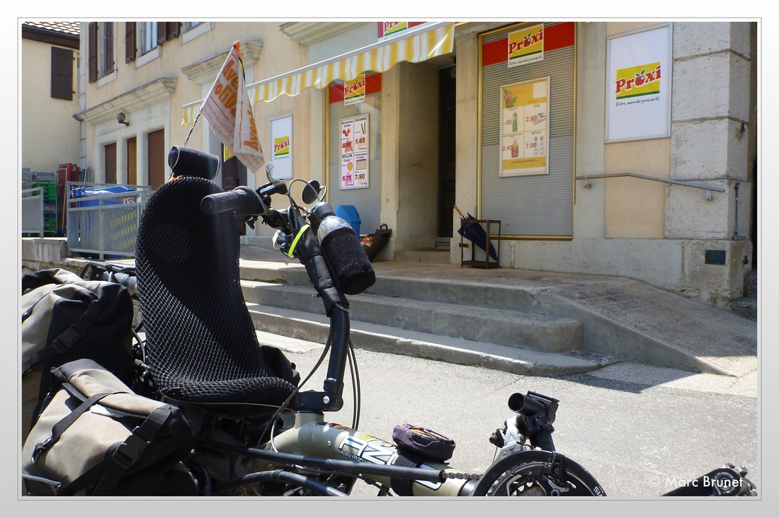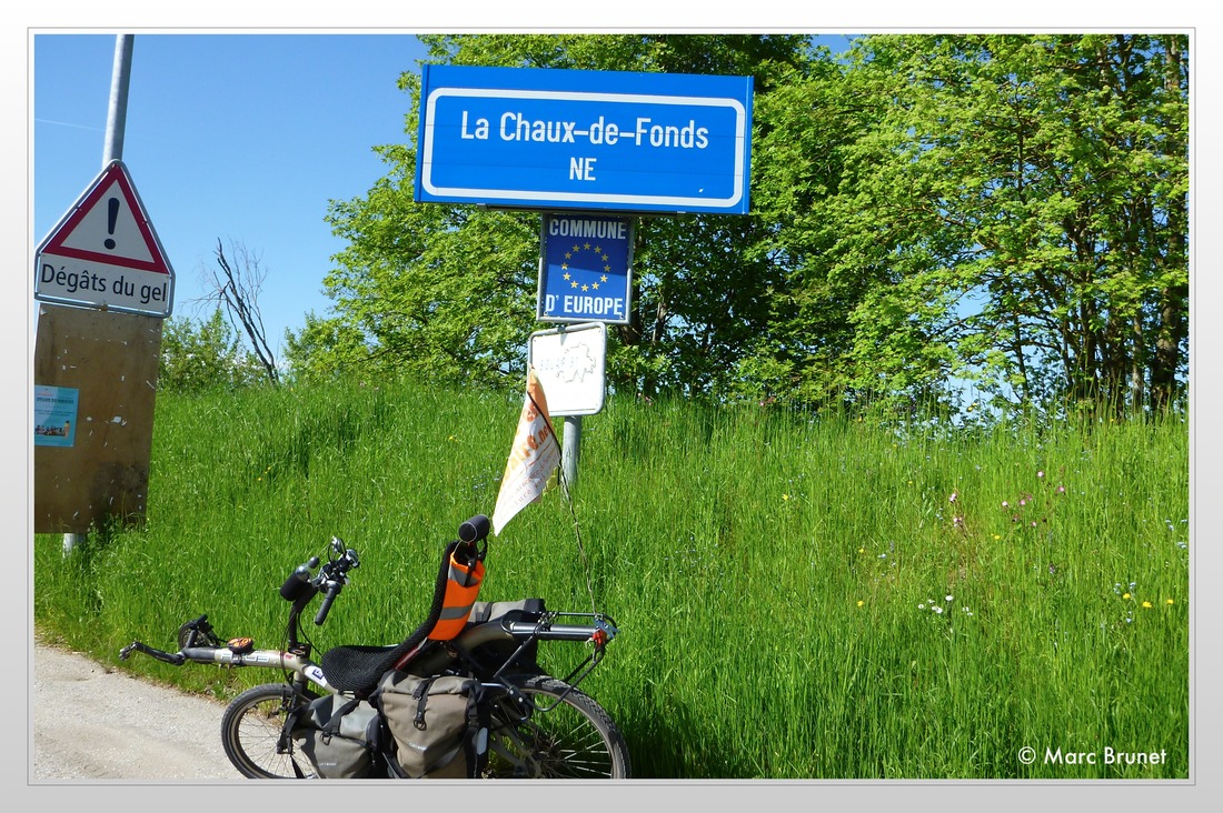 Raté pour la tranquillité. Enfin je l'ai cherché, puisque j'avais envoyé des communiqués de presse… Alors il va falloir limiter les pauses pour honorer ce rendez-vous avec la journaliste. Ca commence bien : un longue descente qui me mène dans la vallée du Doubs me permet de battre mon record de vitesse avec ce vélo chargé : 78 km/h… Et parfois je me penche tellement dans les virages que les sacoches râpent le goudron (je vous rappelle quand même que c'est un vélo couché).