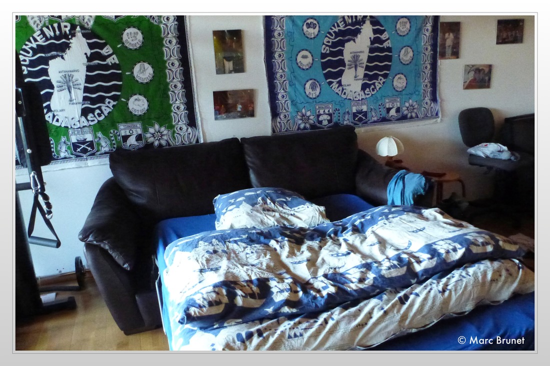 J'arrive chez mon hôte de la nuit, un véritable fou du vélo, et surtout de VTT. A tel point qu'il en a fait son métier durant 4 ans : coursier à vélo. Et Guillaume a même fait partie de l'équipe nationale de VTT Suisse ! D'ailleurs, une pièce de son appartement est consacrée à l'atelier vélo. Nos échanges et discussions sur la conscience sociale écologique (vous vous souvenez de mes remarques sur les cyclistes - encore une confirmation) nous mènent tard dans la nuit, ou plutôt tôt le matin.