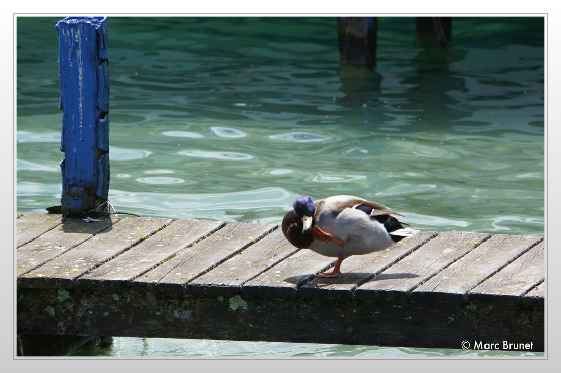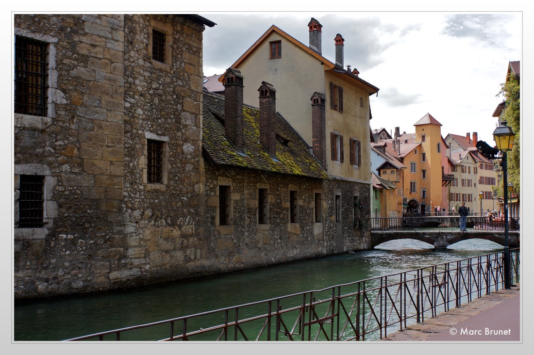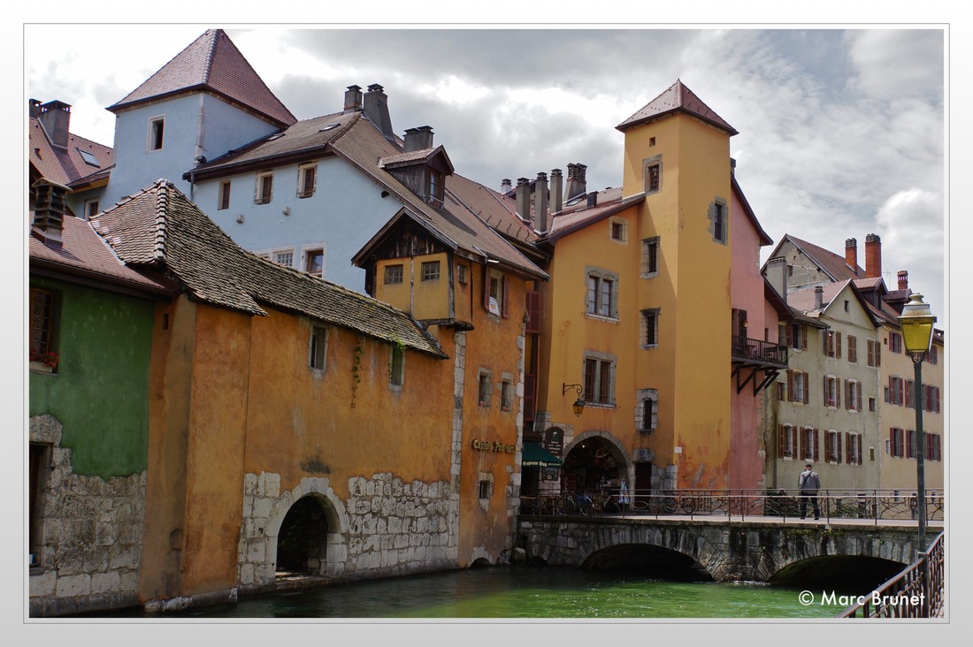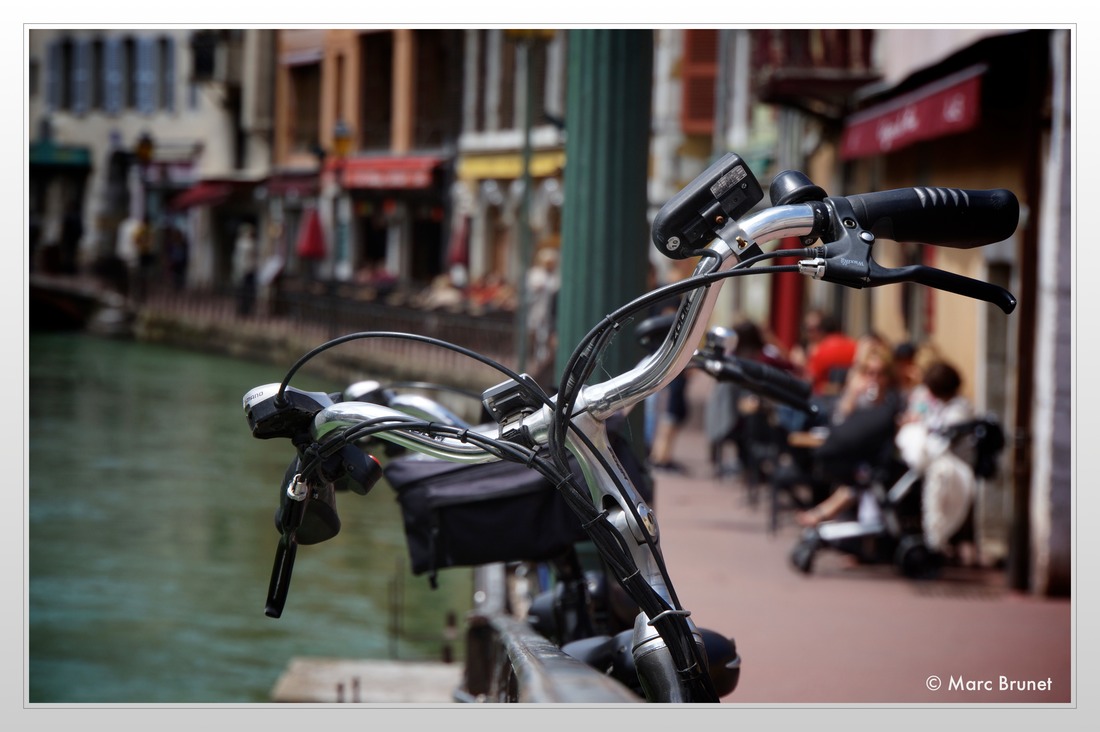 Aujourd'hui j'avais envisagé un rendez-vous, mais je n'avais pas eu de confirmation. Après un coup de fil avant le départ, le rendez-vous est pris, et je dois donc filer sur Annecy. Comme je ne peux finalement pas arriver avant midi, je flâne et je mange au bord du lac. Endroit féérique, comme si les montagnes formaient un écrin pour protéger les eaux translucides de cette étendue. On resterait là des heures. Petits échanges avec des motards présents sur les lieux. Surprise ! Ils viennent de la région où je dois aller en Août pour une conférence, et connaissent le festival. Ils m'assurent qu'ils seront présents…