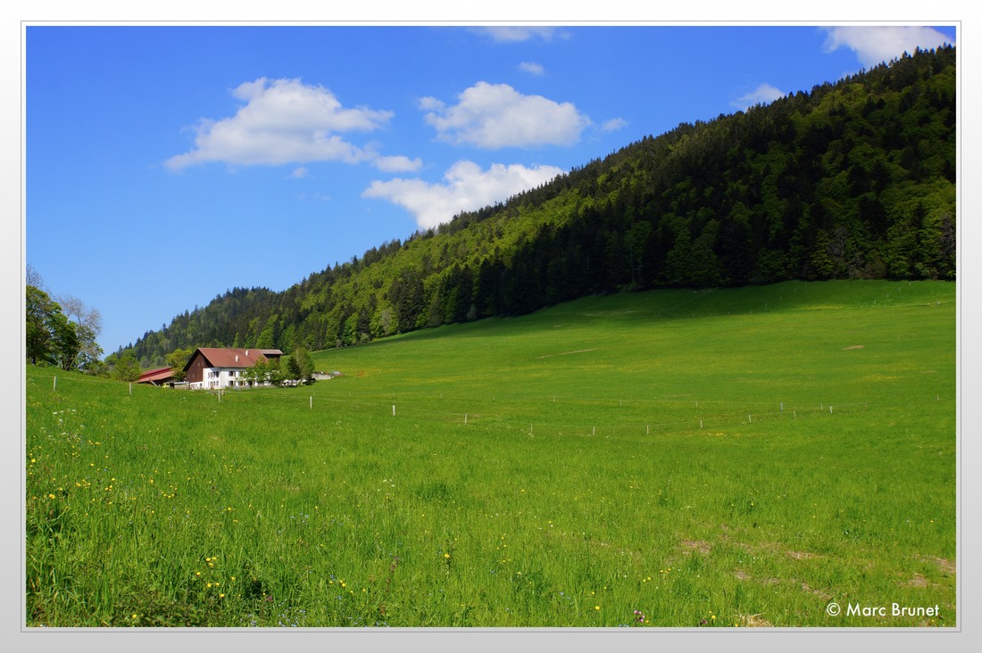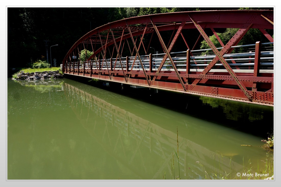 Petite halte au bord du Doubs à l'ancienne douane de Biaufond. Quel calme, seulement troublé par les quelques rares véhicules qui traversent ce pont, et des touristes perdus dans cette campagne profonde.