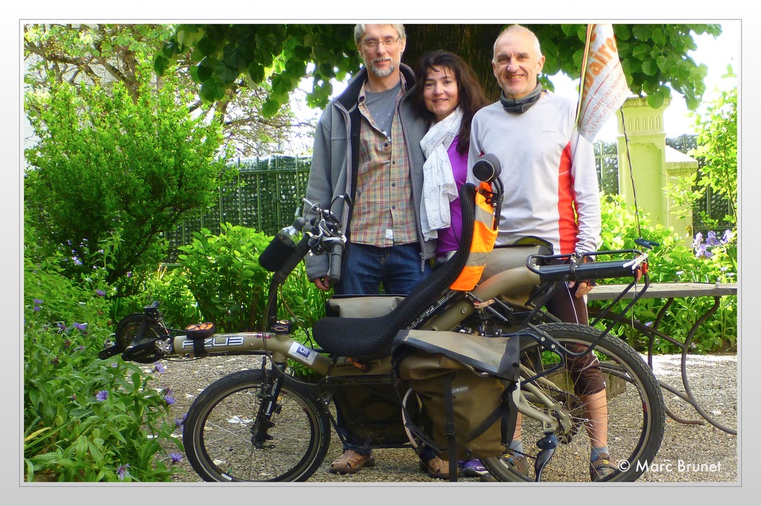 A un feu rouge, une cycliste m'adresse la parole et nous continuons à rouler en discutant. Au fur et à mesure de la conversation, nous nous découvrons des connaissances et amis communs. Et il se trouve que sa voisine a de la famille arménienne (voir aventures 2012). Je suis alors invité à m'arrêter chez elle. Petit détour. Je rencontre la voisine et là, surprise : elle connait bien la belle-famille de ma fille, et son mari est une de nos relations professionnelles. C'est toujours impressionnant toutes ces rencontres le long de la route, qui ne tiennent qu'à .. un feu rouge ou vert.