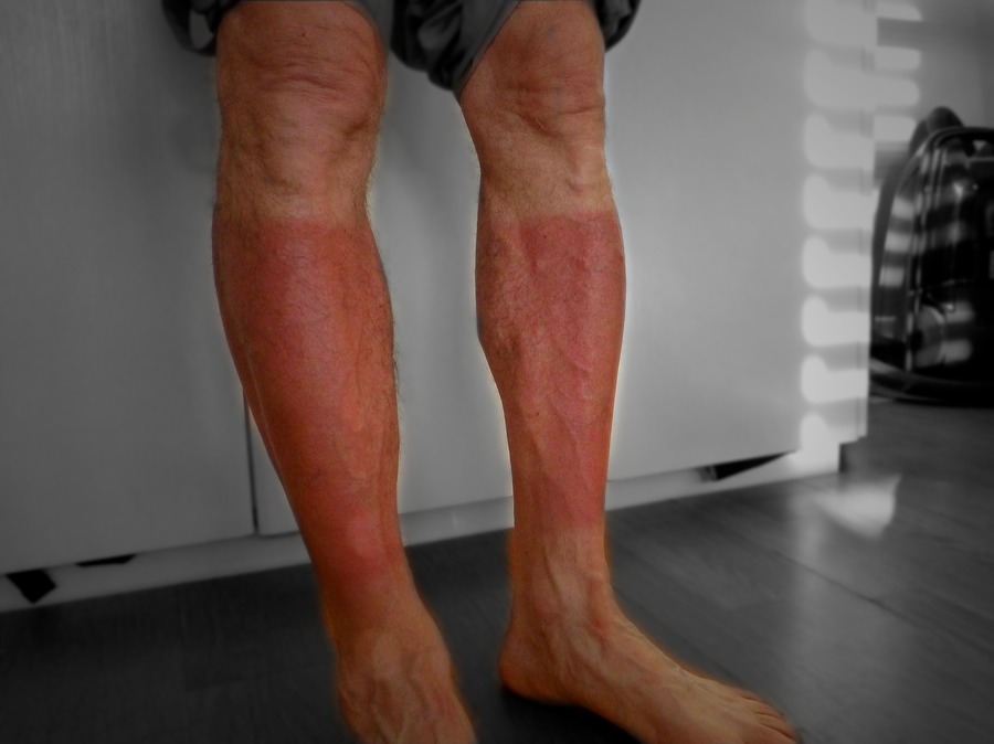 Hier j'ai pris un méchant coup de soleil sur les tibias. Je m'étonne que ma femme n'aie pas prévu la crème solaire… Je crois qu'elle s'est résignée devant la météo de ces dernières semaines.