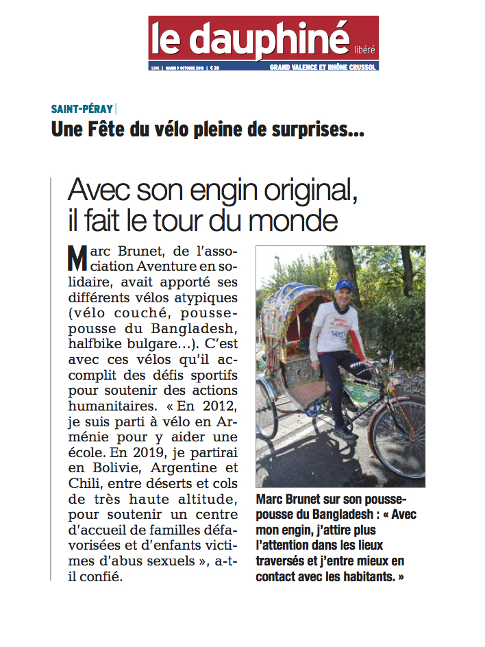 Marc pratique le jogging, le trail, le VTT et le vélo couché depuis de nombreuses années, mais n’a participé à sa première compétition qu’à l’âge de 50 ans. En 2011, malgré une vie professionnelle bien remplie et passionnante, il s’est lancé en parallèle dans des aventures sportives et humanitaires et a découvert que rien n’est impossible : il suffit d’avoir des rêves, d’y croire et de se fixer un objectif. Il a alors créé l’association Aventure en soliDaire. Il a été également l’initiateur et organisateur du festival du voyage et du vélo sur Valence.